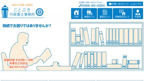神奈川県藤沢市大にある「ことぶき行政書士事務所」様のWebサイトです。 ロゴマークの制作、写真からイ…