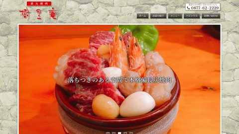 香川県にあるお洒落な空間、「炭火焼肉 樹里庵」様のWebサイトです。 お店の外観に合わせ、大理石調の…